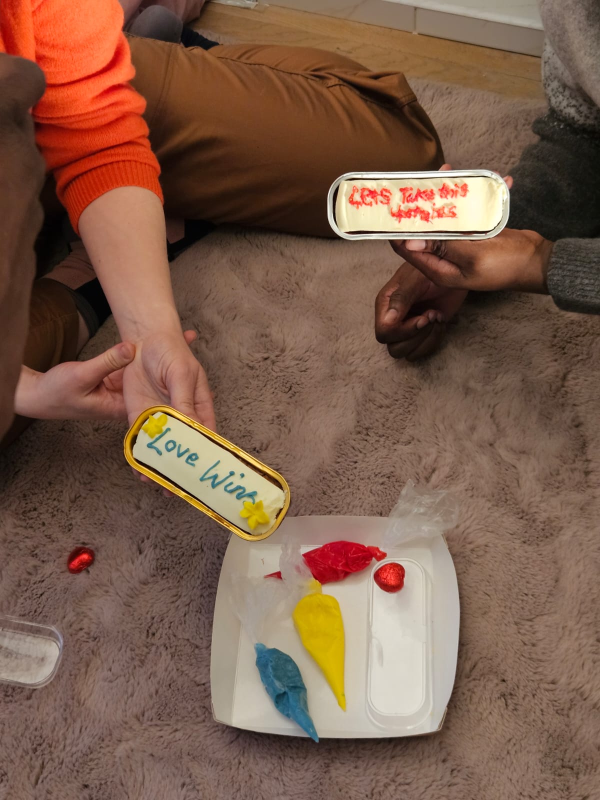 Once you’re done, take a moment to admire each other’s handiwork and, of course, tuck in! With two mini cakes, everyone gets a treat they can truly enjoy.